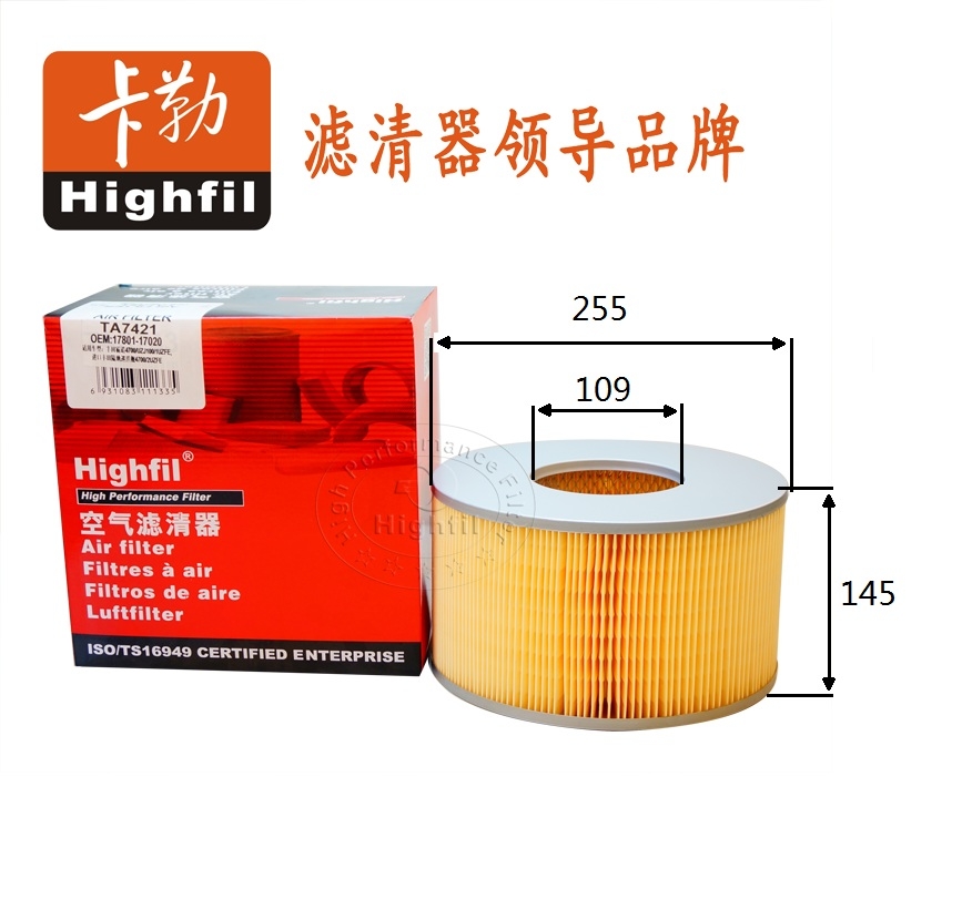 Name: Air FilterPart No.: TA7421Remark: Parm ():254*110*142.5Parm1 ():圓形